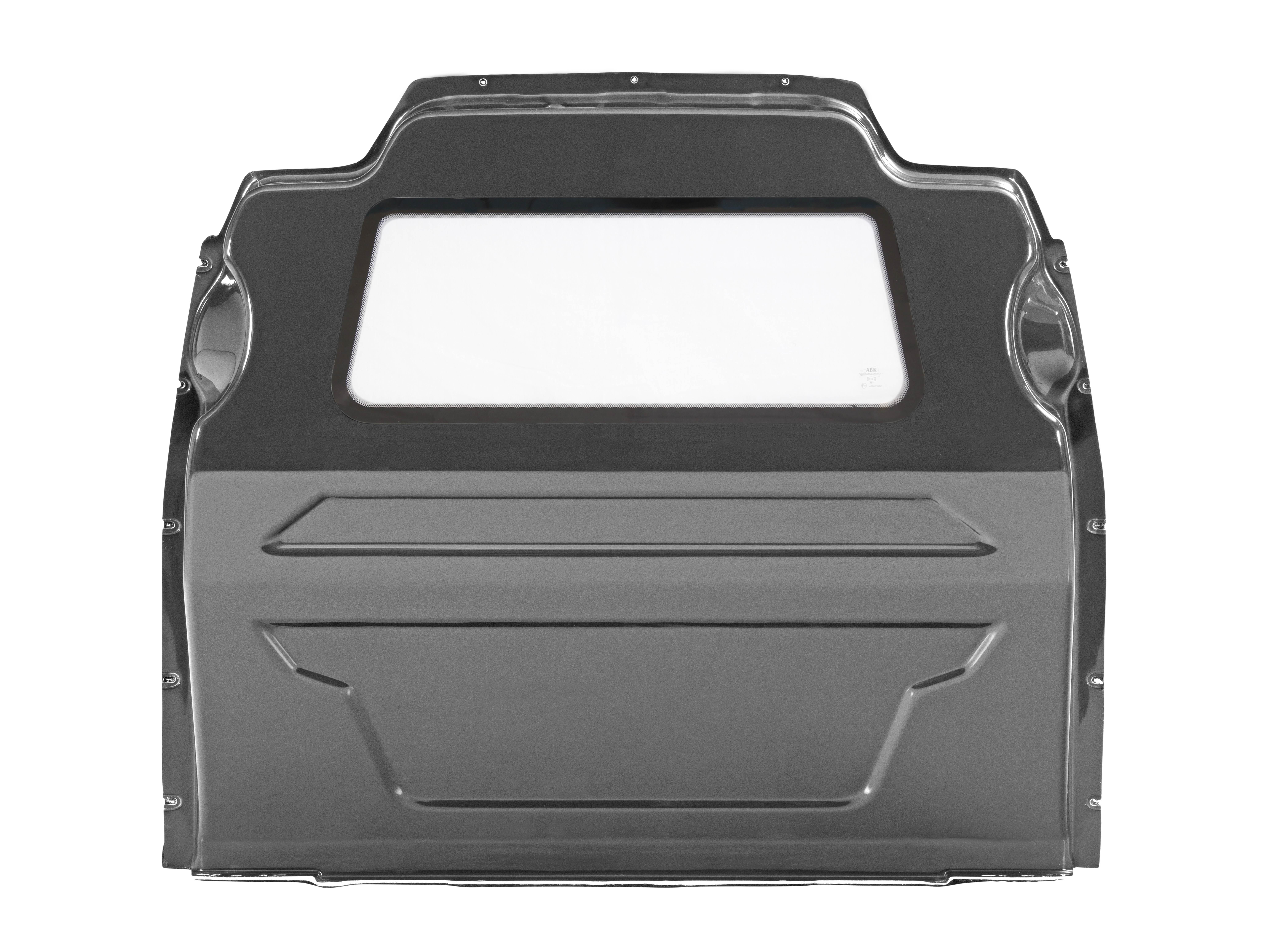 Separatiewand B-stijl polyester RAL 7037 met ruit binnenzijde bekleed Ford Courier.
